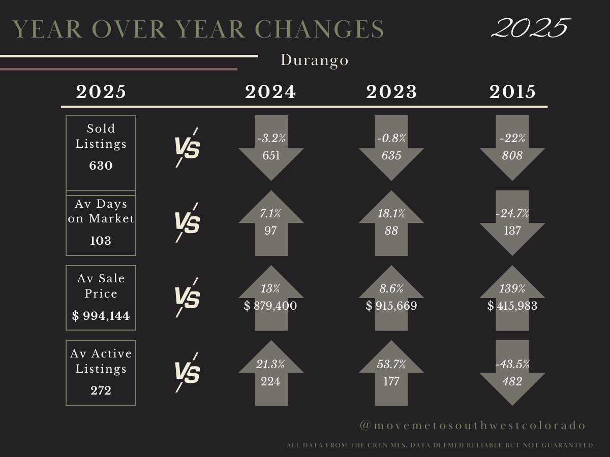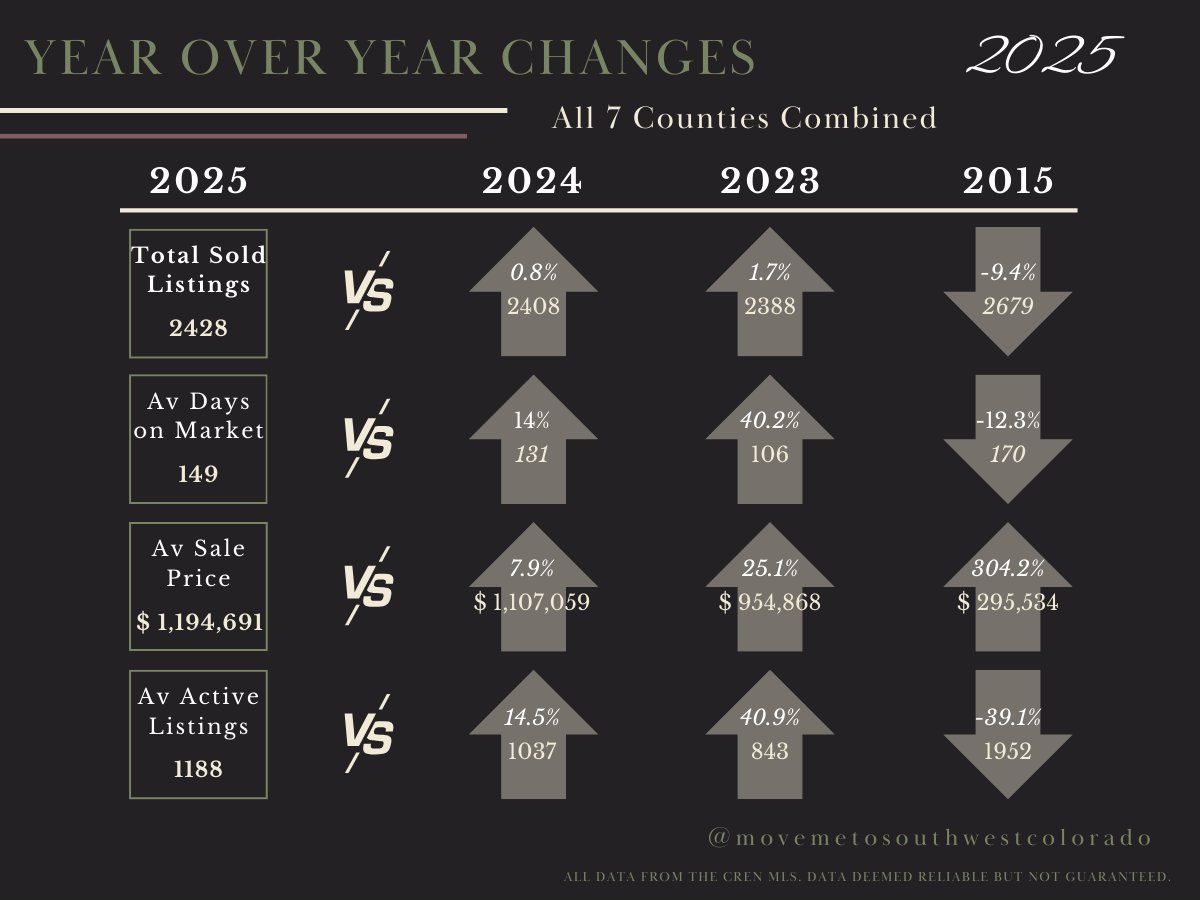 Prices Are Still Rising: The average sale price for the region climbed 7.9% to $1,194,691. This confirms that real estate in Southwest Colorado remains a strong vehicle for wealth preservation.
