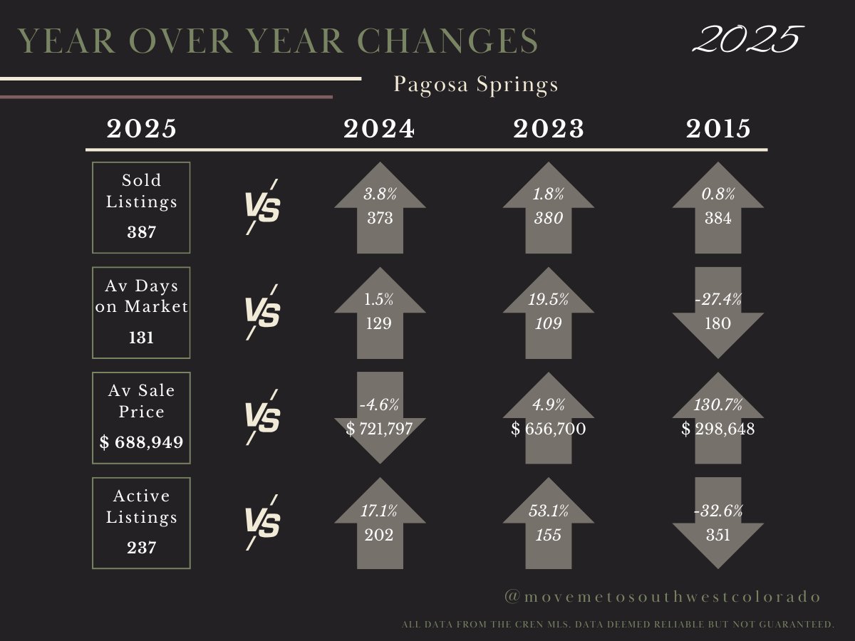 However, the "regional average" hides the real story. 2025 was defined by a stark split in market behavior: Durango cemented its status as a premium market where prices soared despite lower volume, while Pagosa Springs and Bayfield proved that affordability is king, seeing sales growth driven by strategic price corrections.